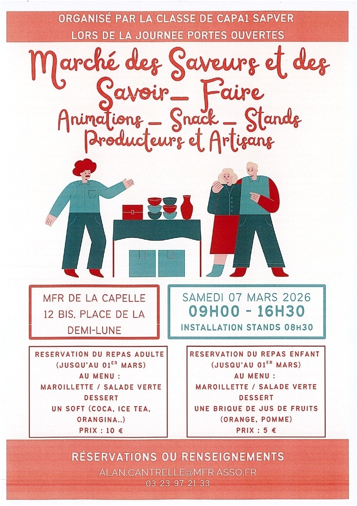 le samedi 7 mars de 9h00 à 16h30 à la MFR de La Capelle