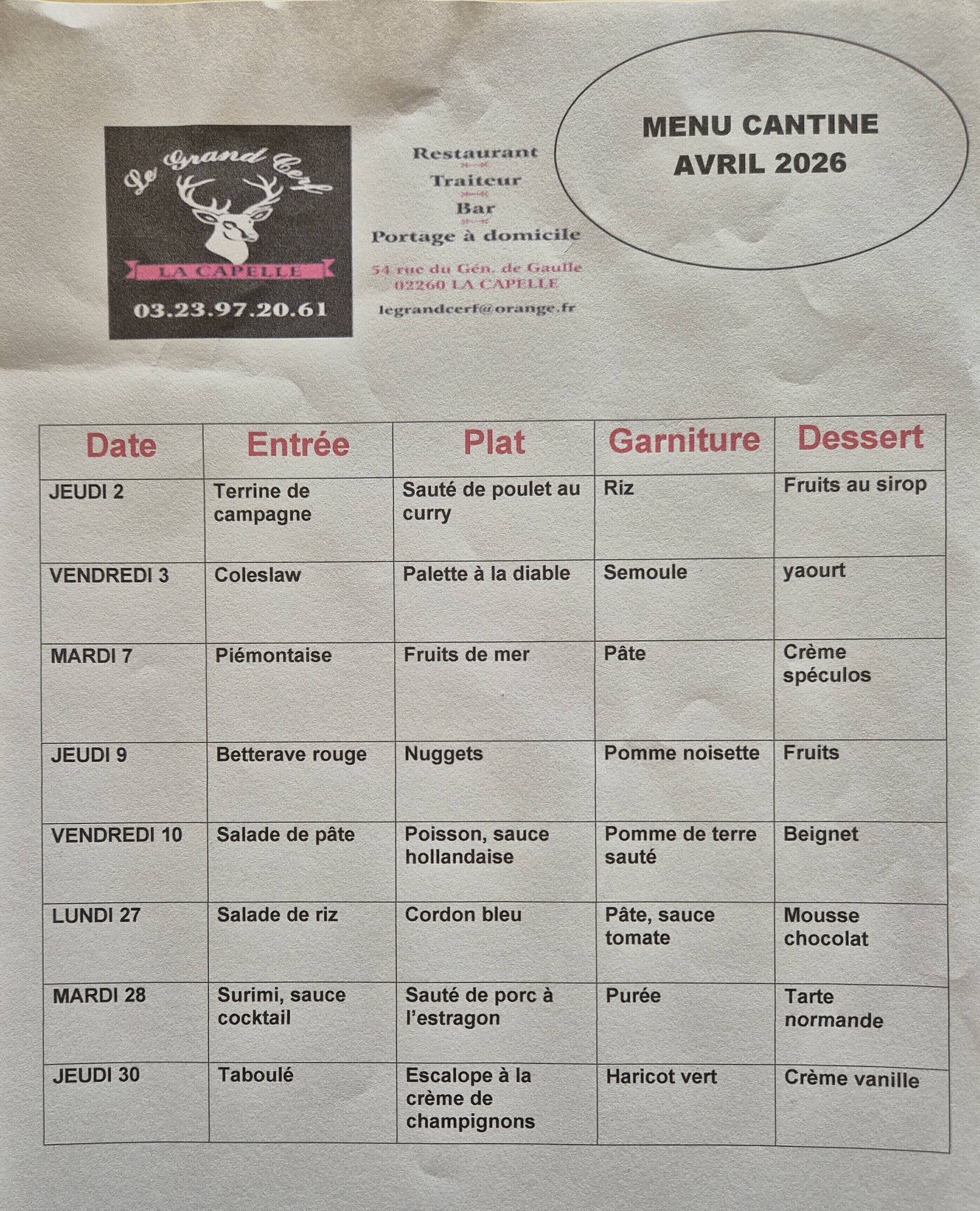 MENUS ECOLE MATERNELLE